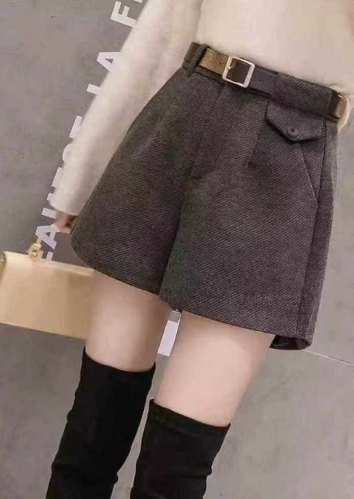 400多条实体店收回来 女秋冬毛呢短裤宽松显瘦高腰加厚...