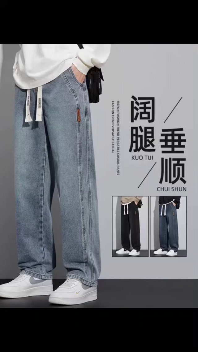 ☕️潮牌男装松紧腰牛仔阔腿裤2200条全清13.8元分货+1元,码数S到3XL,统一...