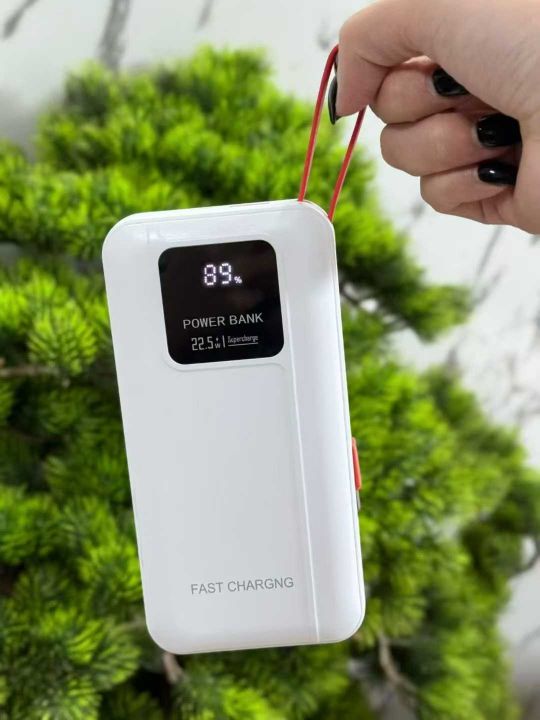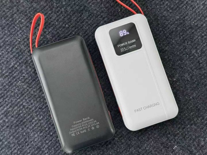 足容20000毫安,超级快充,电池A品带3C,带3C检测报告,22.5W带线快充,25年电池,全新封膜,箱规箱规40×30×30,一件50pcs,黑白2色,新入库5000pcs