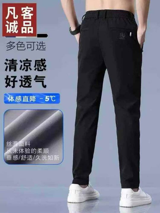 直筒长裤新款秋夏季薄款冰丝裤子男士大码休闲裤透气弹力运动裤男,整款2色...