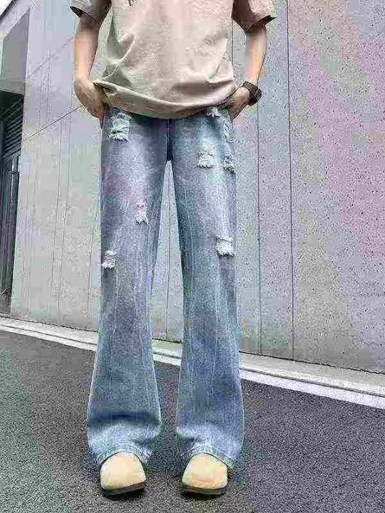 天猫下架男女同款水洗棉裂纹破洞复古牛仔裤,213件,...