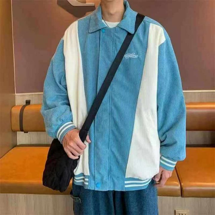 灯芯绒外套男春秋季美式vintage潮牌复古宽松拼接撞色...