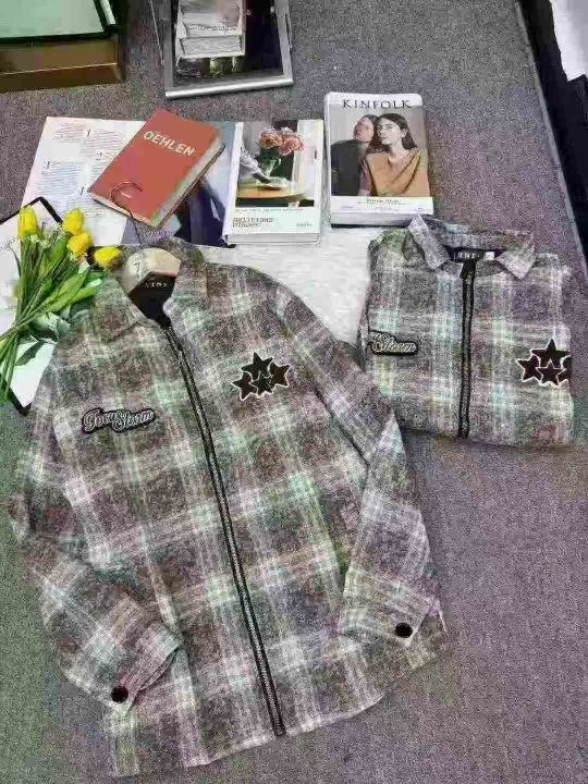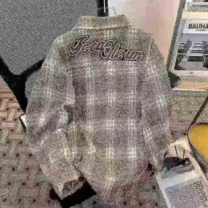 全清13.8美式vibe刺绣格子夹克男女同款春秋季宽松外套...