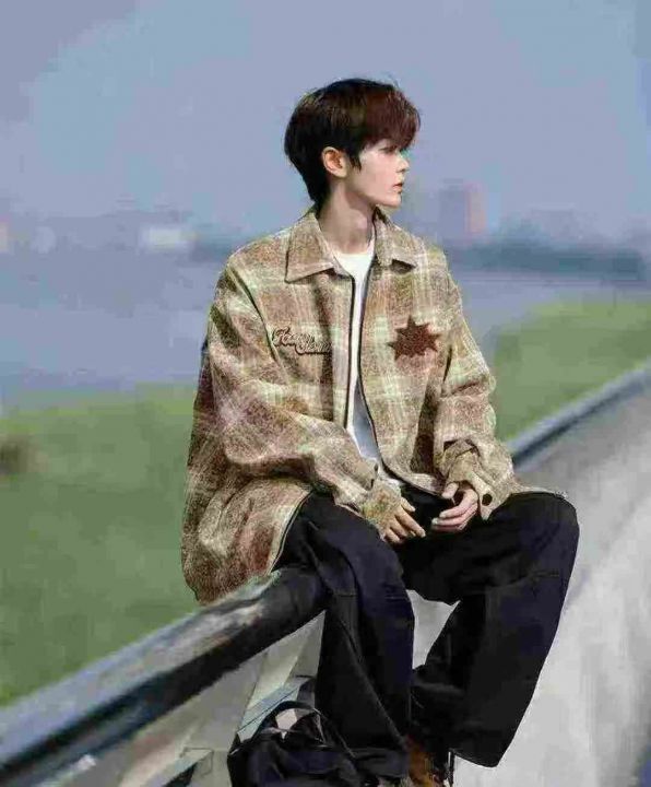 美式vibe刺绣格子夹克男女同款春秋季宽松外套潮牌复古痞帅情侣衣服,221件,M-2XL码,型号:0618#30,分货➕1