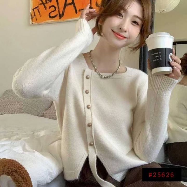 上新全清:12.8一件高级感不规则排扣小众别致针织开衫,[爱心]45件左右,均...