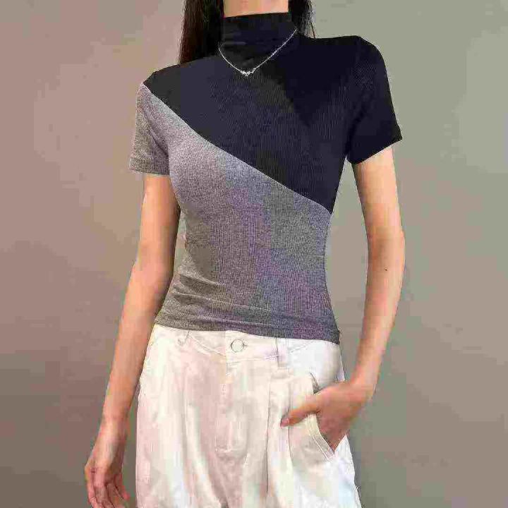 全清4.8元天猫在售款188件左右高品质夏季半高领拼色螺纹短袖T恤,单款单色...