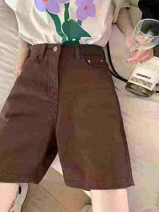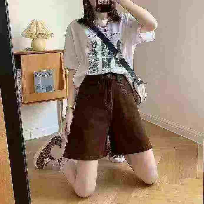 高弹力咖啡色牛仔五分裤☕️70条全清7.8元,码数S合适80-100斤,独立包装,棉弹新款梨形身材直筒裤子阔腿高腰五分裤