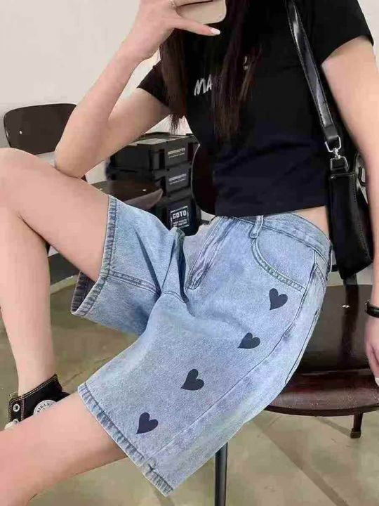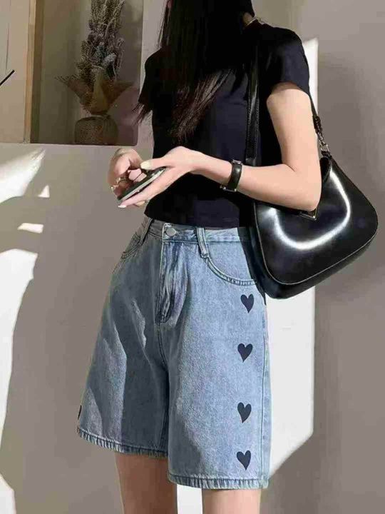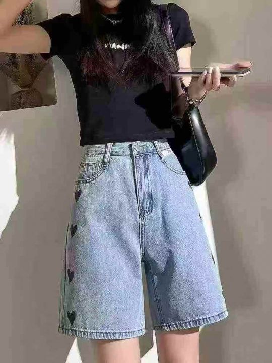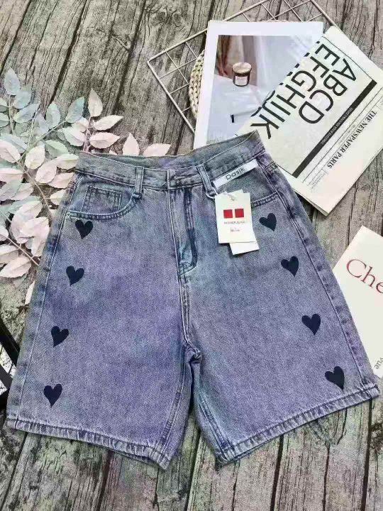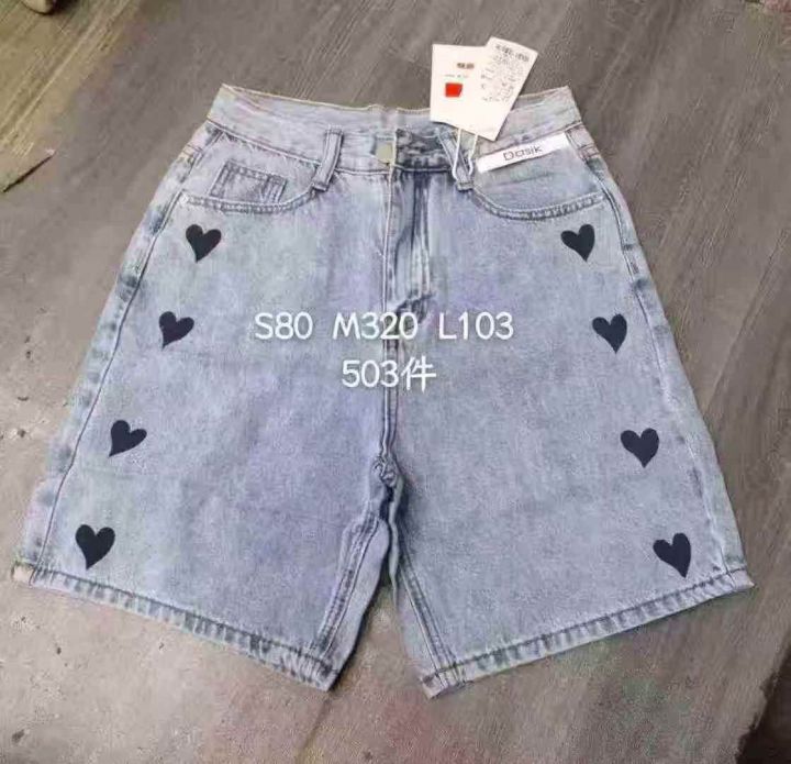 拉夏贝尔爱心牛仔短裤女☕️300条全清9.9元,码数SML,独立包装。有码数清单,夏季a字牛仔中裤高腰五分牛仔直筒阔腿裤。 货号:1303
