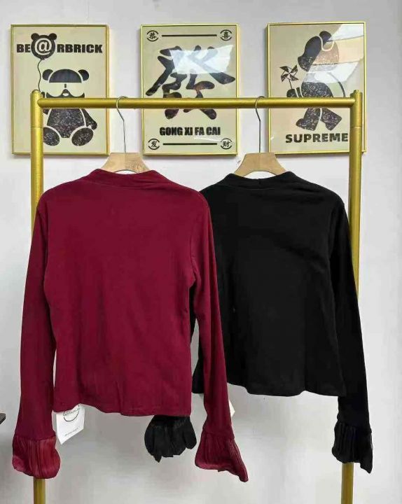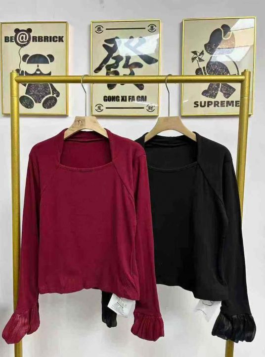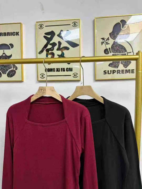 天猫在售款500件左右高品质法式纯欲风方领双面德绒长袖保暖打底,袖子雪纺拼接喇叭袖设计,单款两色,M-2XL,货品干净,面料柔软带弹力,独立包装。 货号:1303