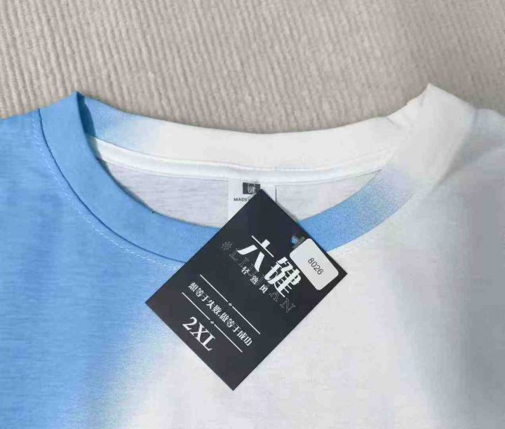 夏季男装圆领短袖T恤,后领包边,同一个牌子渐变色370件和印雪花260件两款共630件,M-3XL,独立包装吊牌,全清5.8元,分货+0.5