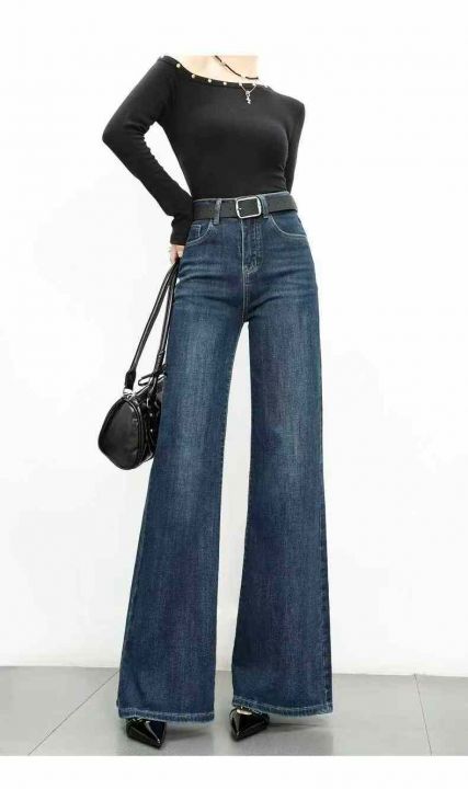 秋冬新款洗水棉网红直筒阔腿牛仔长裤,独立包装带吊牌...