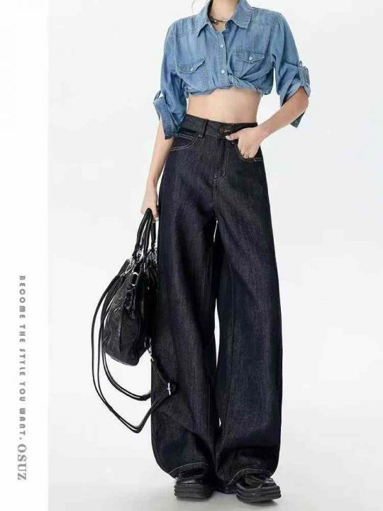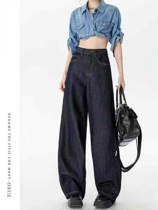 秋冬新款洗水棉网红直筒阔腿牛仔长裤,独立包装带吊牌...