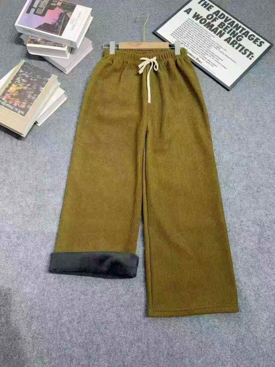 天猫店下架时尚女装灯芯绒休闲裤 280件 均码 可穿到160斤 单款单色 抽绳设计 加薄绒 款式新 货品干净 全部拉链独立包装 全清9.8。 货号:1303