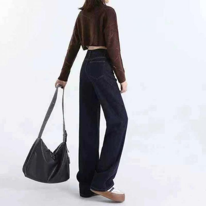 秋冬新款高品质女装复古蓝直筒阔腿牛仔长裤,独立包装...