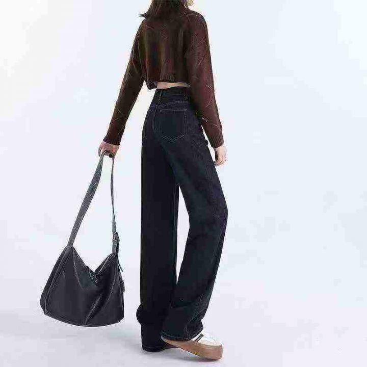 秋冬新款高品质女装复古蓝直筒阔腿牛仔长裤,独立包装...
