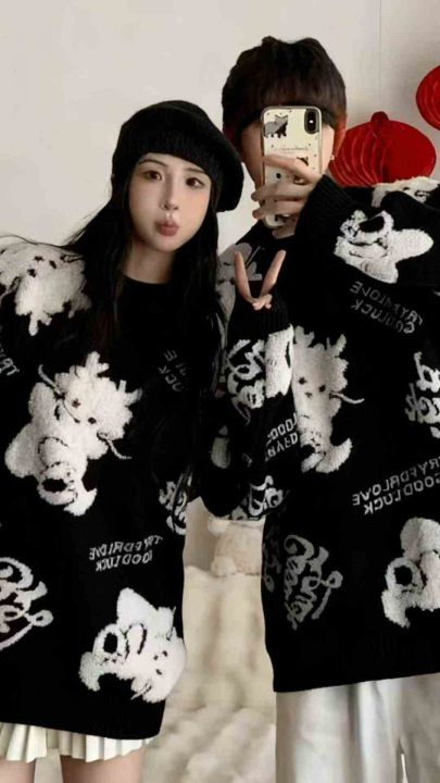 秋冬新款大板落肩宽松慵懒风卡通提花芝麻底2条毛包芯纱套头毛衣,独立包装带吊牌,码数XS--3XL码(有码数清单)(XS都可以穿到130斤左右宽松)1300件(大码多),全清9.9元超低价秒杀!分货加一!
