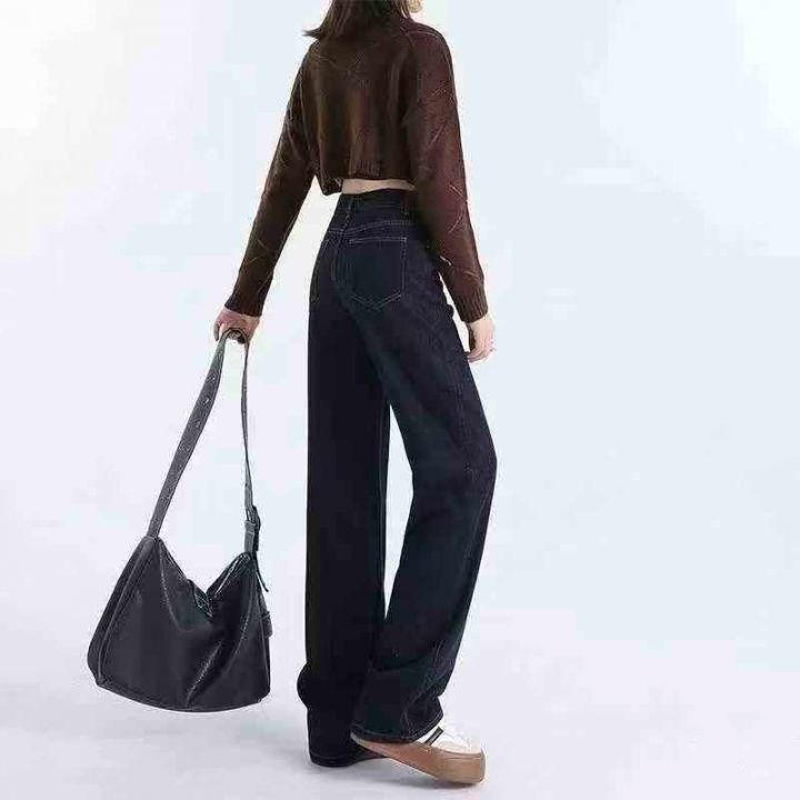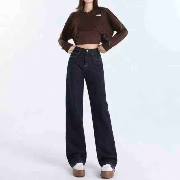 秋冬新款高品质女装复古蓝直筒阔腿牛仔长裤,独立包装...