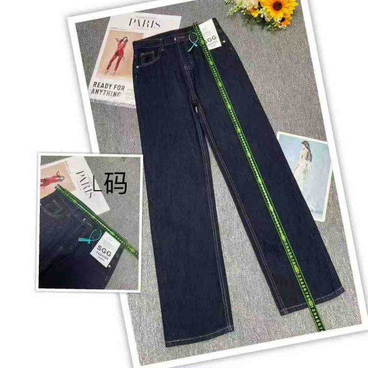 #Jeans wholesale 弯刀牛仔裤女士秋冬半松紧高腰长阔腿裤 宽松镰刀裤,单款...