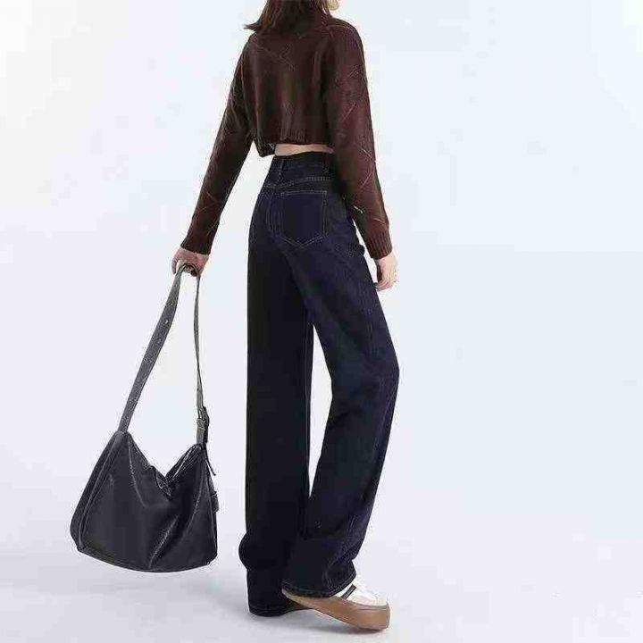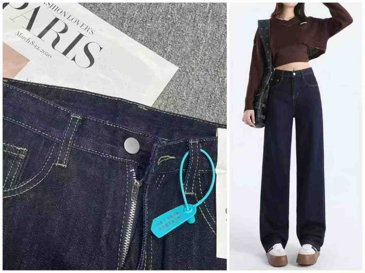 秋冬新款高品质女装复古蓝直筒阔腿牛仔长裤,独立包装...