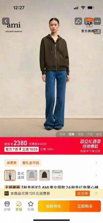 AMI艾米拉链外套卫衣400件,3色,S-2XL码。 货...