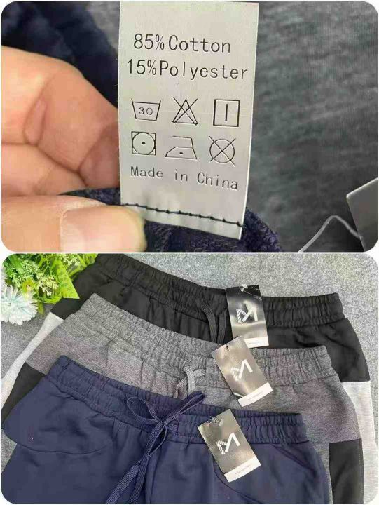 80件棉质拼结休闲短裤。同一个品牌,松紧系绳,面料柔...