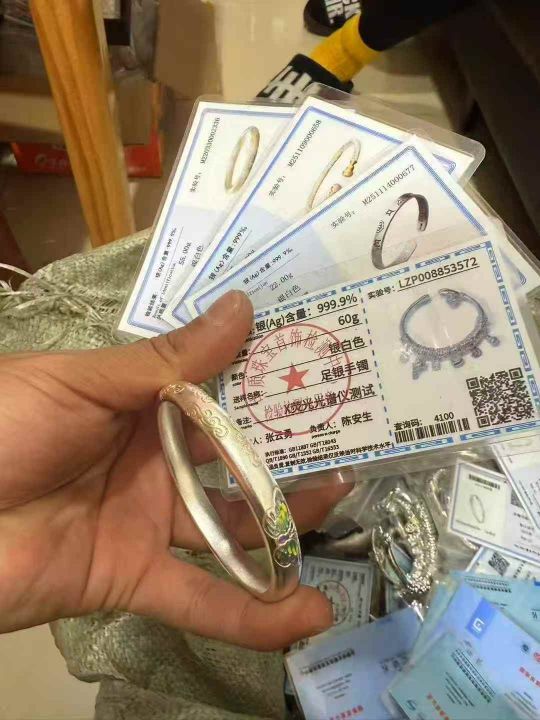 高档古法纯铜镀厚银手镯230个,带证书带钢印。 ...