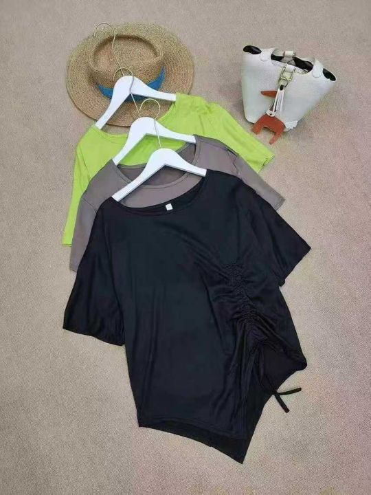 不规则抽绳收腰设计休闲宽松T恤
