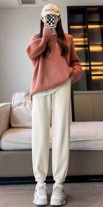 11.8元清高品质雪尼尔休闲宽松束脚加绒加厚裤,整款两...