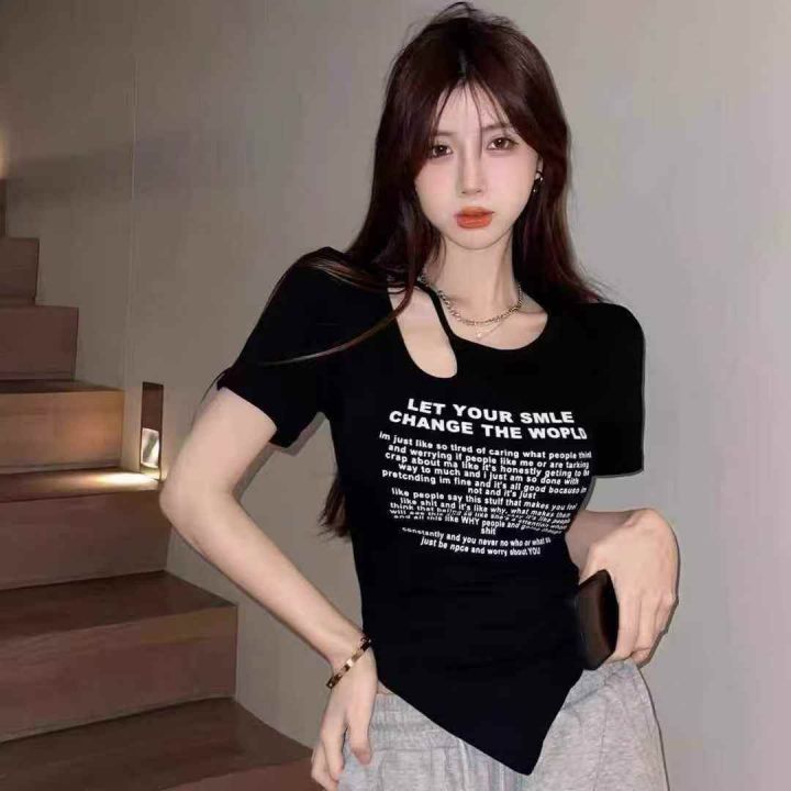 [月亮]:甜辣纯欲风镂空设计感辣妹短袖
