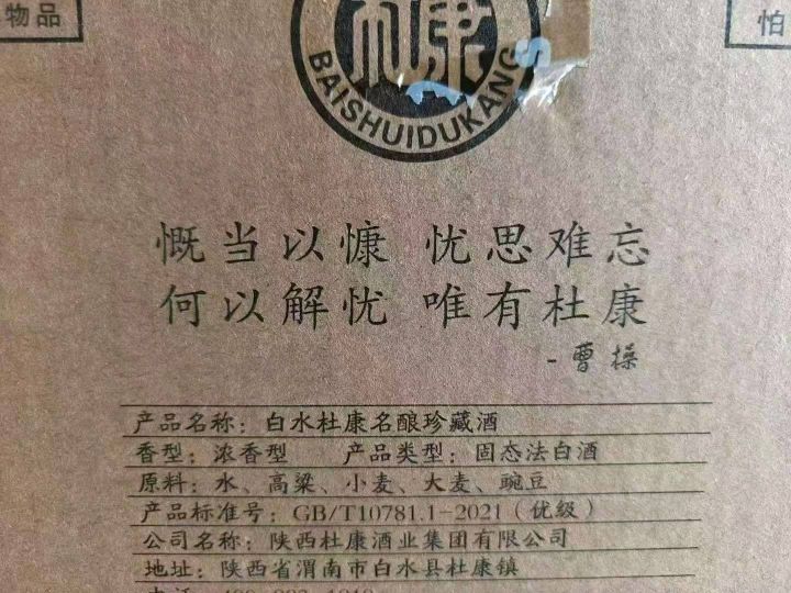 陕西白水杜康——名酿珍藏,浓香52度纯粮优级白酒,一...