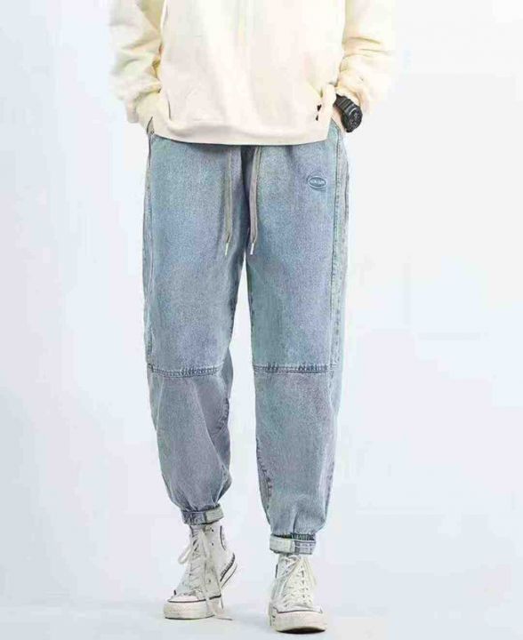 秋冬新款宽松百搭松紧腰男士牛仔裤,独立包装带吊牌,...