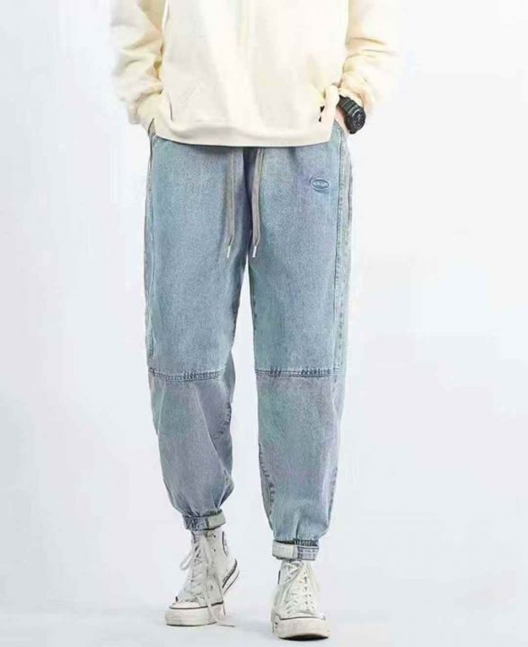 秋冬新款宽松百搭松紧腰男士牛仔裤,独立包装带吊牌,...