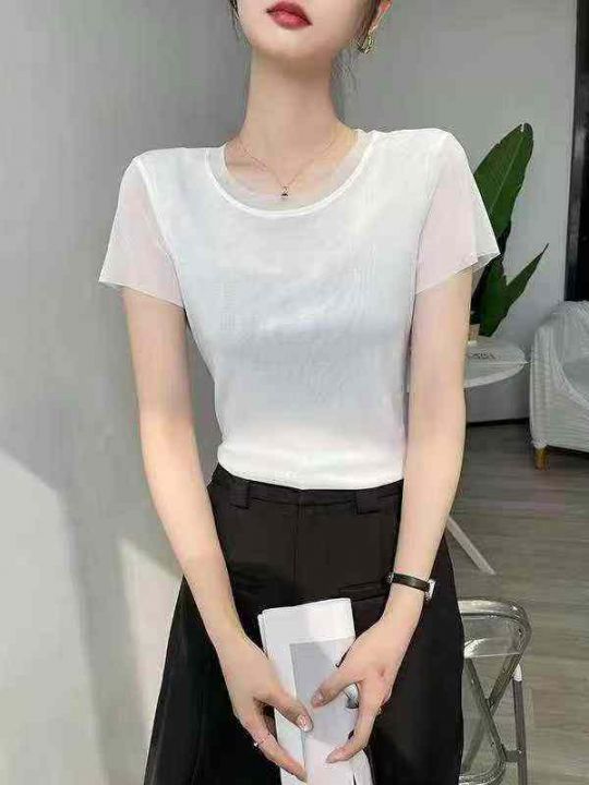 清仓2.9128件白色t恤短袖女夏季薄款独特网纱内搭打底...