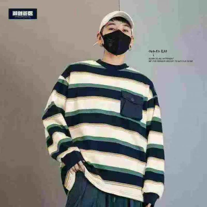 195件,美式潮牌重磅小口袋条纹圆领卫衣日常休闲外套...