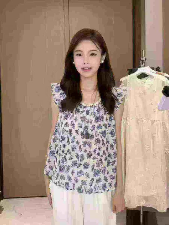 3.8元,女装夏季法式没计感飞飞袖碎花上衣,382件,S-...