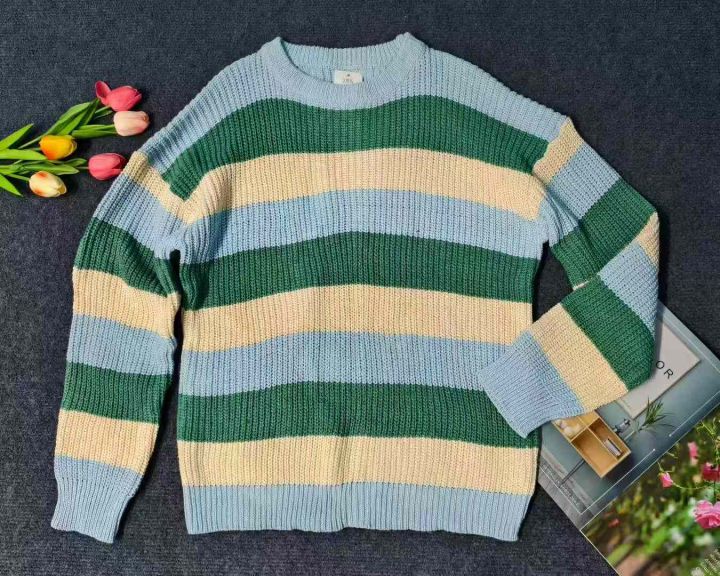 秋冬季慵懒风情侣百搭条纹宽松圆领毛衣,男女同款,100件,M-2XL,独立包装吊牌,全清10.8元