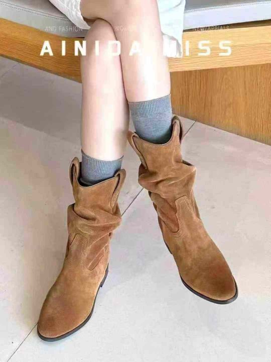 牛皮版~法式尖头西部牛仔靴女2025新款冬季短筒堆堆靴美拉德短靴,数量 80 双,码数 36-43。 图片款,鞋盒包装品质好非常好。全清 16.8