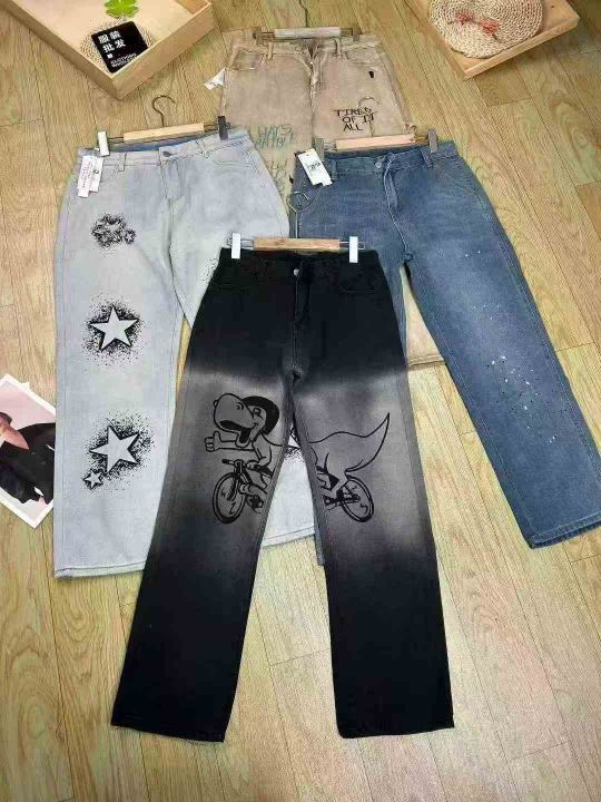 外贸单 高品质重工艺刺绣 烫钻 涂鸦款疯狂牛仔裤,数量650条,尺码s-3xl码,无独立包装,大工厂货 统一吊牌。低价批发14.5秒杀(只限全清)
