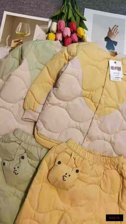 儿童轻薄夹棉百搭保暖棉衣套装,[爱心]80套左右,码数100-150,穿4岁-12岁,万佳档口货,原包装️无瑕疵,实体店品质@_@