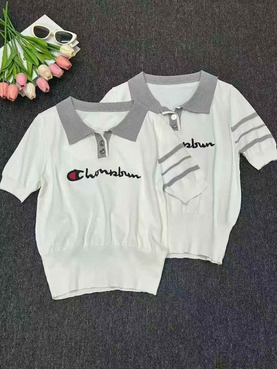 针织收腰夏季Polo衫女短袖翻领上衣,独立包装,100件...