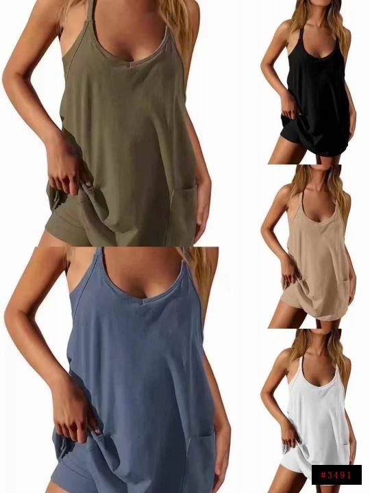 欧美夏季女士吊带上衣连体短裤连体衣休闲套装,码数S M L XL ,面料舒服柔软,全部有独立包装,货品干净,300条左右,全清5.8@_@