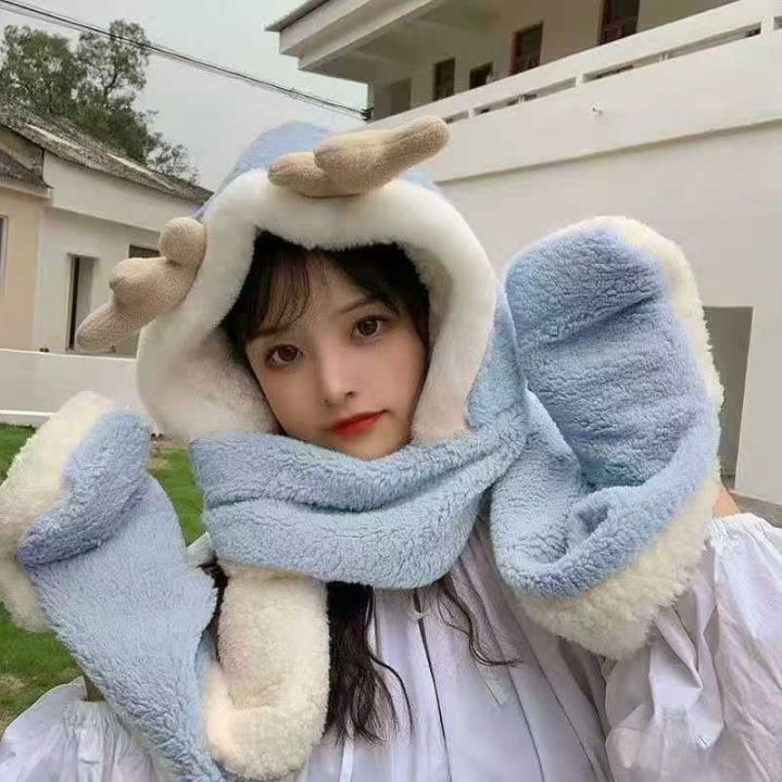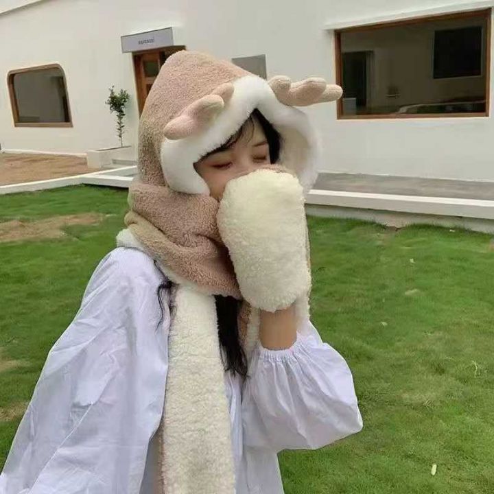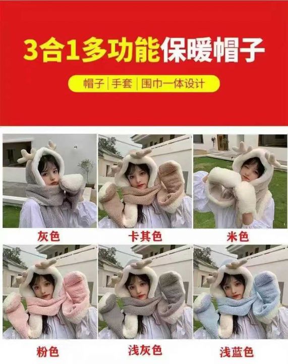 套头围巾一体骑车保暖手套三件套潮,1000件...