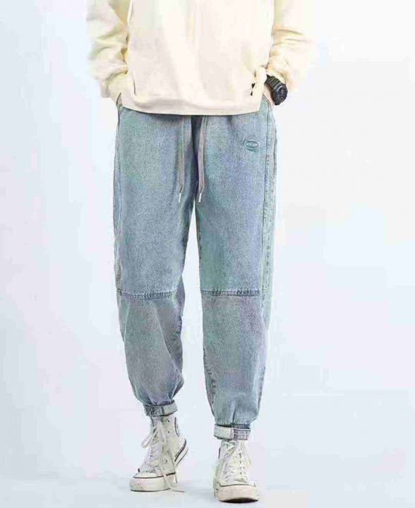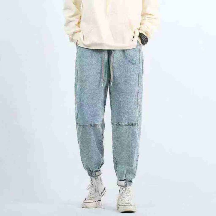 秋冬新款宽松百搭松紧腰男士牛仔裤,独立包装带吊牌,...