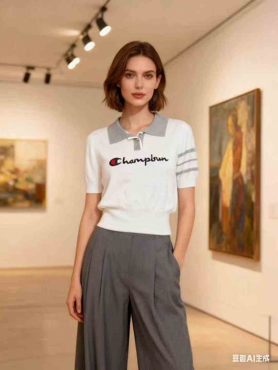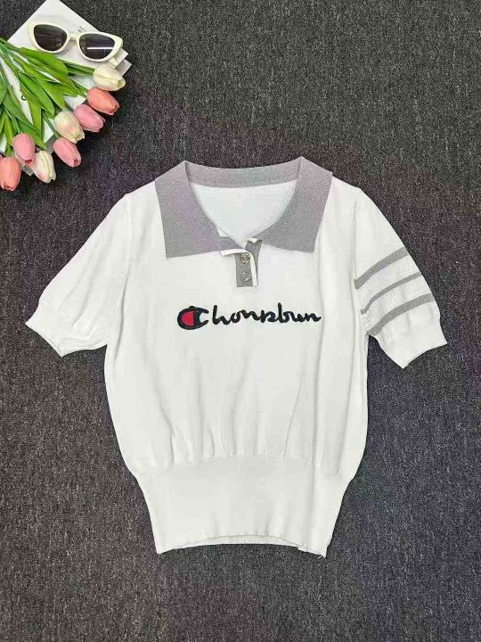 针织收腰夏季Polo衫女短袖翻领上衣,独立包装,100件...