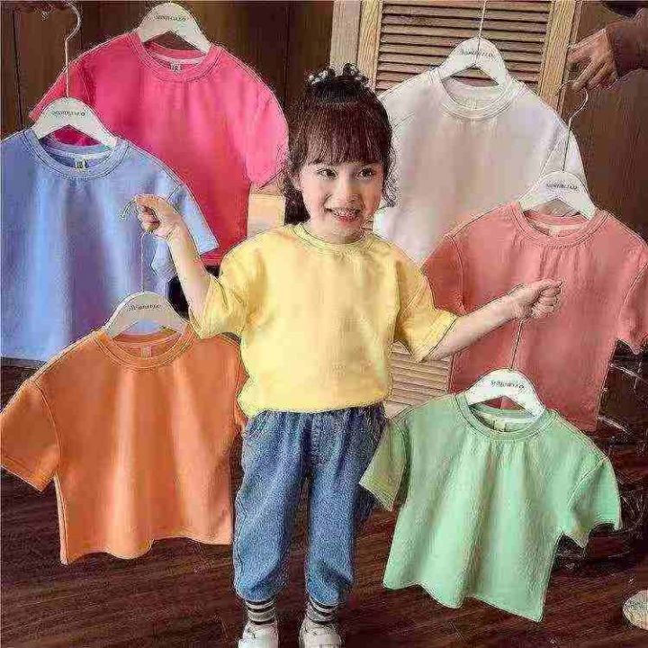 100%纯棉男女童简约纯色短袖糖果色小中大T恤衫,90一150码,防水袋装,做工...