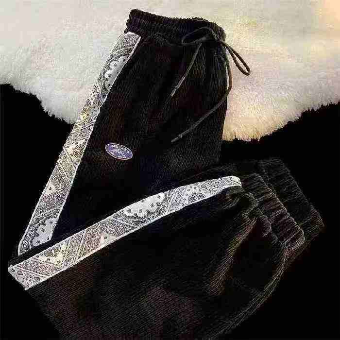 清8.8男装冬季港风灯芯绒拼接抽绳松紧脚口加绒休闲卫裤,数量164件,码数S-...