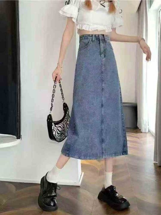 夏秋季新品洗水棉网红复古牛仔半身长裙,独立包装带吊...