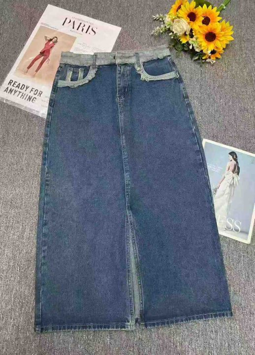 夏秋季新品洗水棉网红复古牛仔半身长裙,独立包装带吊...