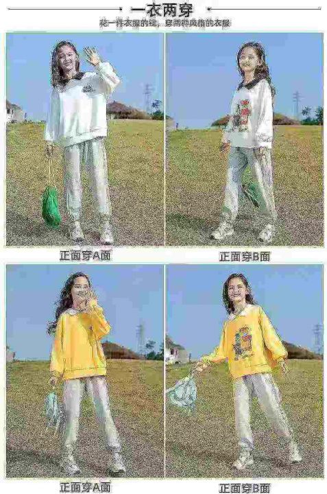 全清5.8元天猫在售款120套左右高品质中大童棉质休闲运动卫衣套装,可双面穿...