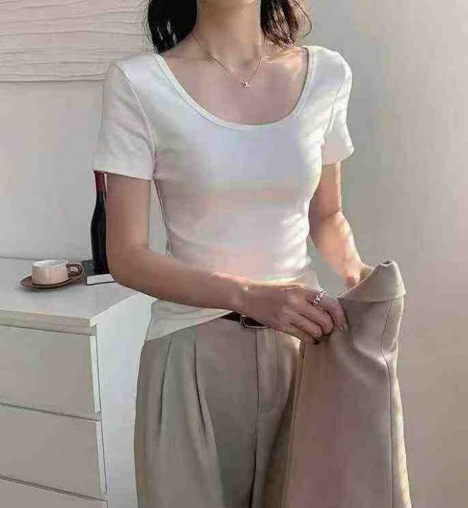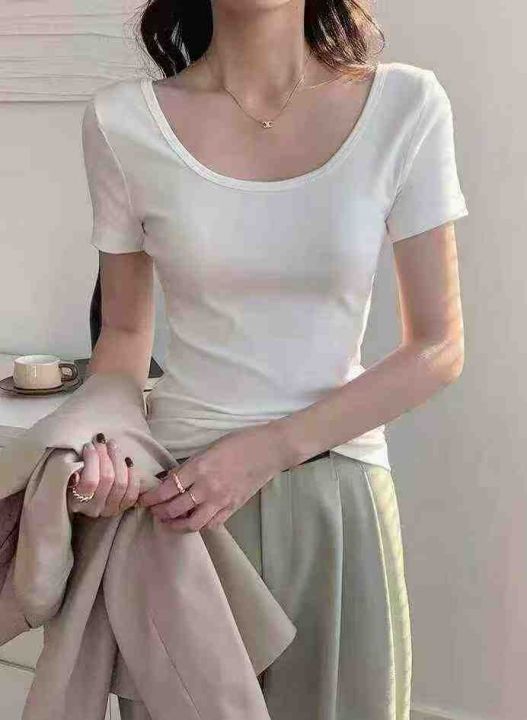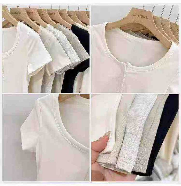 [月亮]:5.5清457件[月亮]:纯棉拉架棉白色高弹U领T恤...